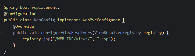 Transform XML-based configurations from Spring MVC to annotation-driven or property-based configurations in Spring Boot. Use @Configuration classes for complex setups and externalize properties using application.properties or application.yml for environment-specific settings.